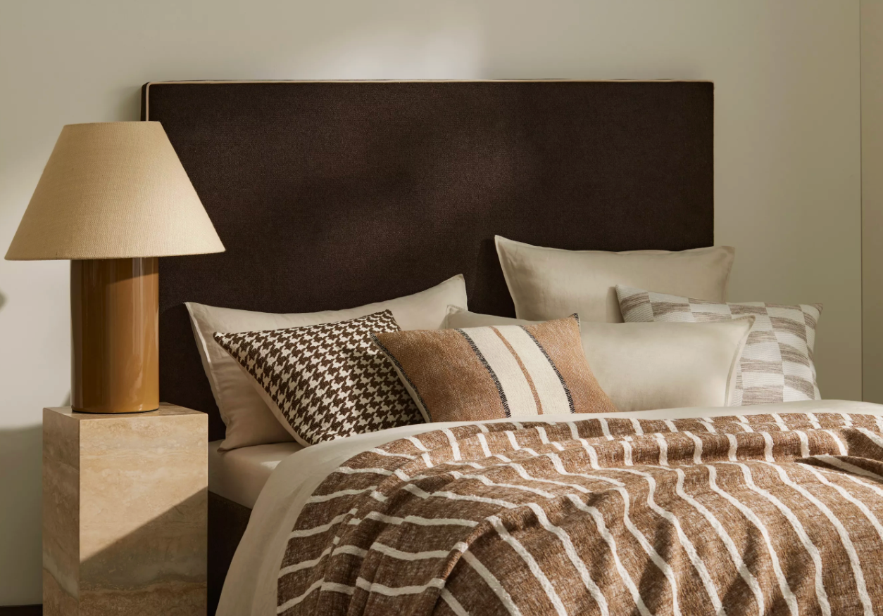 The Ottavio cushion in Cocoa combines a soft, spiced brown with beige and onyx chunky stripe for a warm or rustic style.