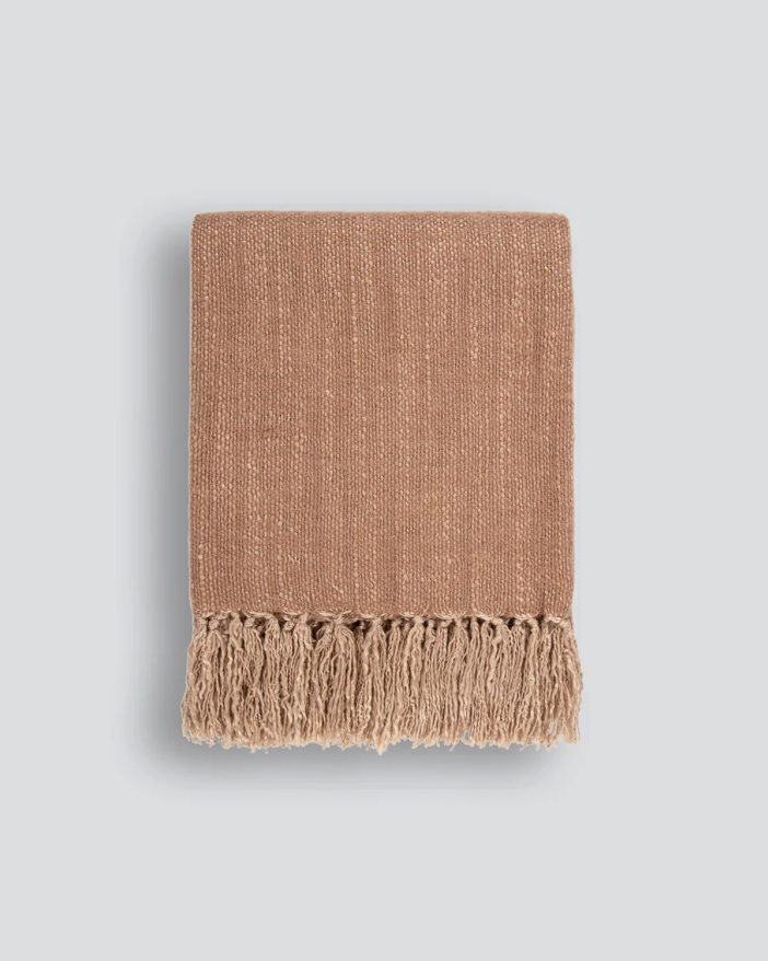 Construction: Woven, light-weight throw with brushed texture and luxury tasselled edge. Excellent drape.