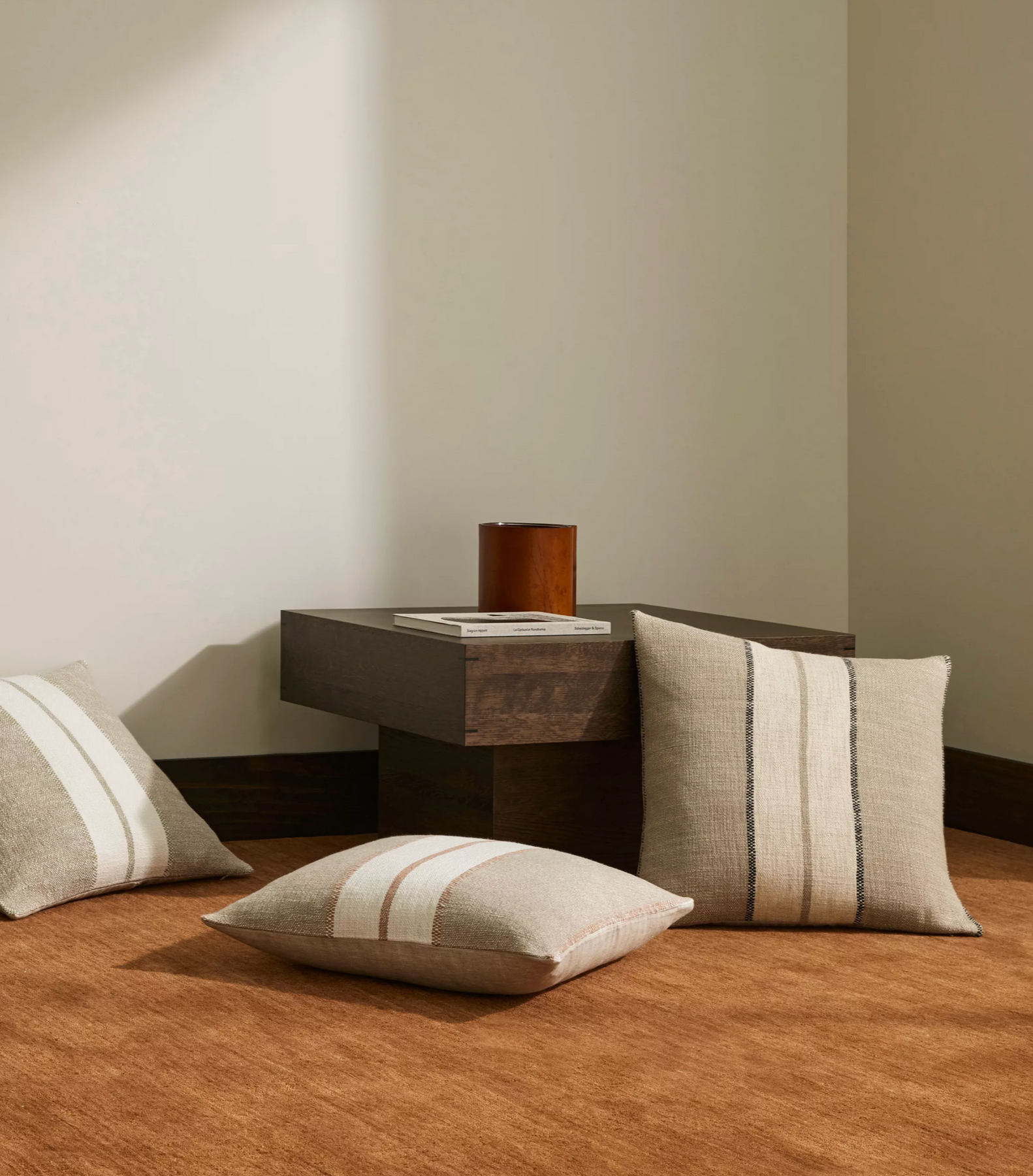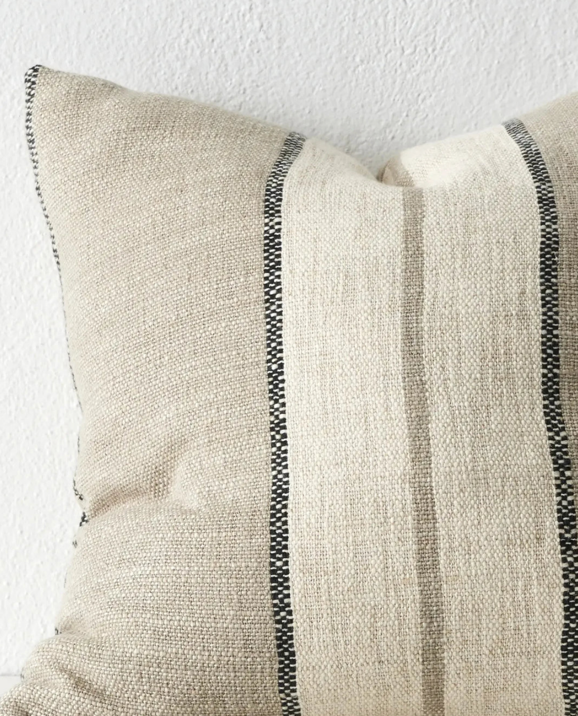 The Ottavio cushion in Natural combines light, warm beige hues with white and onyx checkered board stripes for added complexity and surface appeal.